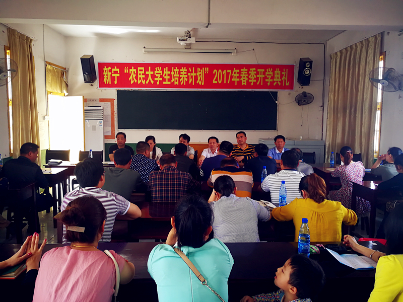 5月10日,新宁县2017年春季“农民大学生培养计划”教育班开学典礼在县教师进修学校举行。经过层层推荐选拔来自全县16个乡镇的59名基层学员参加了开学典礼。