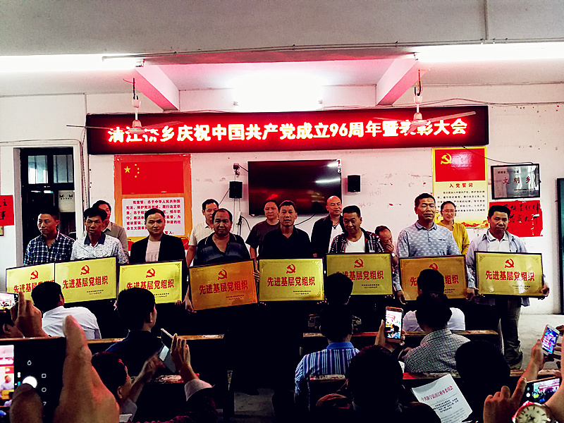 乡党委召开了庆祝建党96周年暨表彰大会,评比表彰了8个先进基层党组织、7名“两学一做”党员之星、8名优秀第一书记和54名优秀共产党员,邀请离任的村党支部书记参会,并颁发了荣誉离任纪念证书。同时组织各党支部开展形式多样的主题活动,以支部为单位组织党员重温入党誓词,进行党员民主评议,要求支部书记上党课。清泉村党支部会后就组织中青年党员进行防汛排查,消除安全隐患2处。范里村党支部党员“一对一”转移安置地质灾害易发点群众4户12人。七兴村党支部开展党员走访活动,听取党员和群众对新任村支“两委”班子的意见和建议。通过活动的开展,既严肃了各党支部的政治生活,也增强了农村党员的荣誉感、责任感。