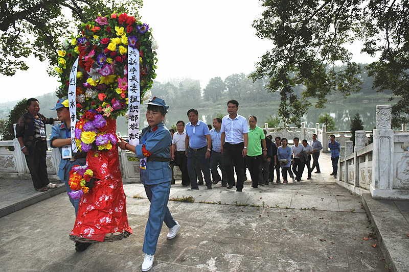 图为县委组织部机关全体党员为革命烈士敬献花篮仪式现场