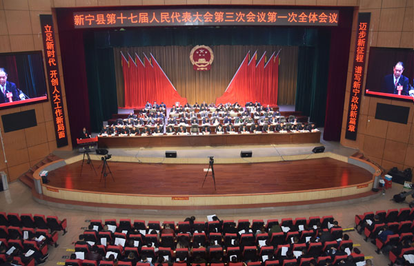 12月29日上午8:30,在雄壮的国歌声中,新宁县第十七届人民代表大会第三次会议在崀山国际会展中心开幕。本次大会应到代表231名,实到219名,因事因病请假12人,符合法定人数。