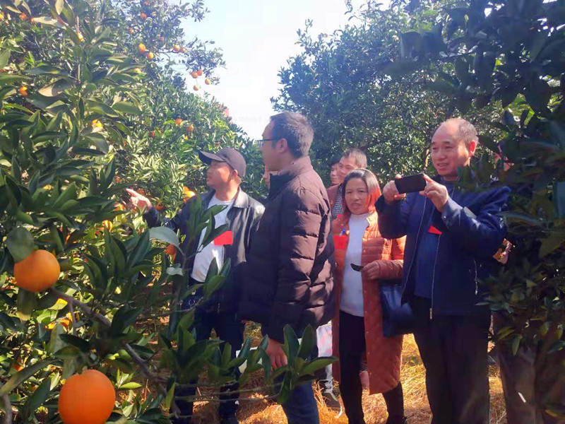 图为参训学员实地参观月汉村万亩脐橙基地,现场感受种植脐橙的致富效益