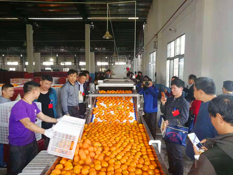 图为参训学员在现场教学点——龙丰果业生产车间参观学习脐橙加工流程和储藏保鲜技术