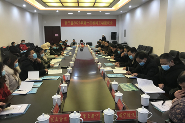 本网讯(融媒体记者 姚磊)1月8日,新宁县网信办组织召开了2021年第一次政网互动座谈会,县委组织部、县委宣传部、县人社局、民政局等单位负责人和县内新媒体从业人员代表50余人参加座谈会。