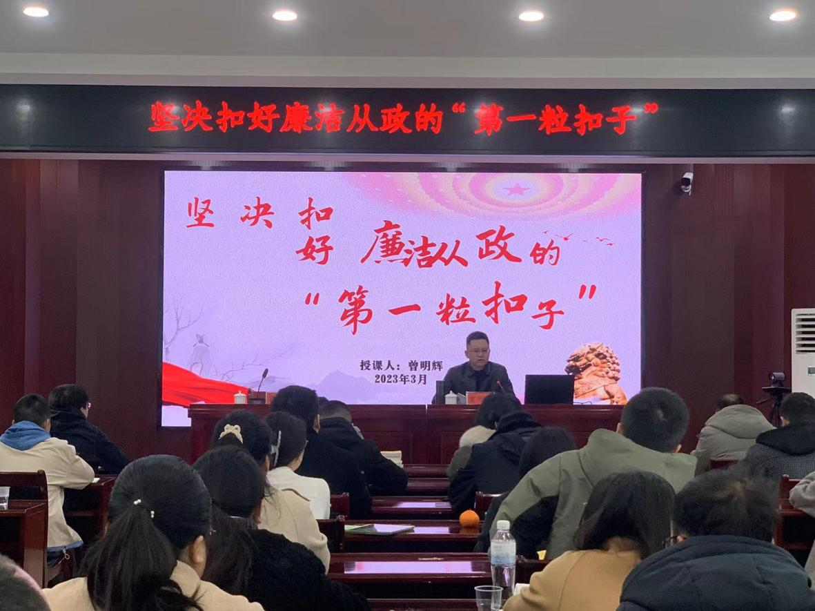 3月28日上午,县委常委、纪委书记、监委主任曾明辉受县委党校邀请为2022年新录用公务员初任培训班授课。曾明辉以《坚决扣好廉洁从政的“第一粒扣子”》为题,为初任公务员理论学习“加餐”。