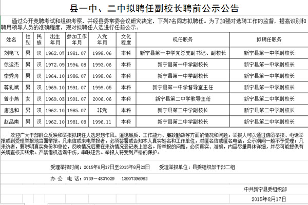 县一中、二中拟聘任副校长聘前公示公告