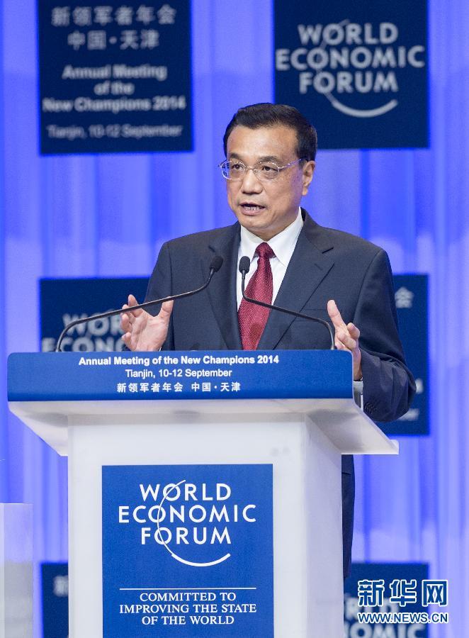国务院总理李克强10日下午在天津梅江会展中心出席第八届夏季达沃斯论坛开幕式,并发表特别致辞。