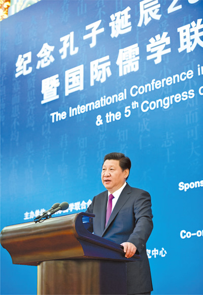 9月24日,国家主席习近平在人民大会堂出席纪念孔子诞辰2565周年国际学术研讨会暨国际儒学联合会第五届会员大会开幕会并发表重要讲话。