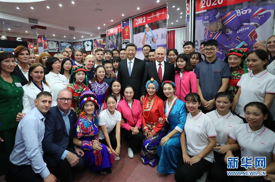 2018年9月12日,国家主席习近平在符拉迪沃斯托克同俄罗斯总统普京一起访问“海洋”全俄儿童中心。这是习近平和普京同中俄青少年代表及中心教职工代表合影。 新华社记者鞠鹏摄