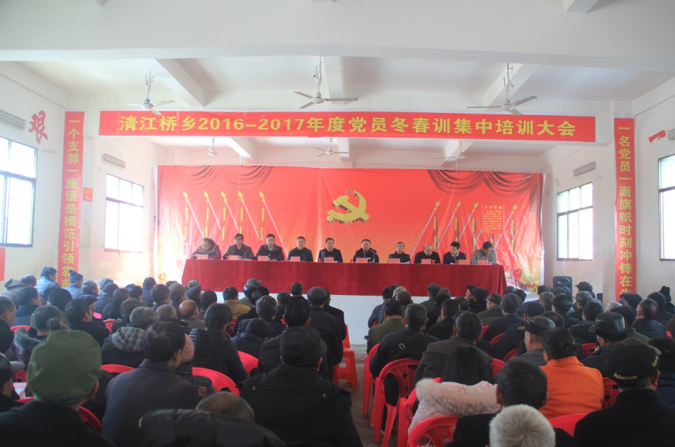 2月26日上午九点钟,清江桥乡410多名党员在清江桥乡中心小学礼堂开展2016-2017年度党员冬春训集中培训大会。县委组织部常务副部长胡建平、组织组组长陈相会出席培训会。