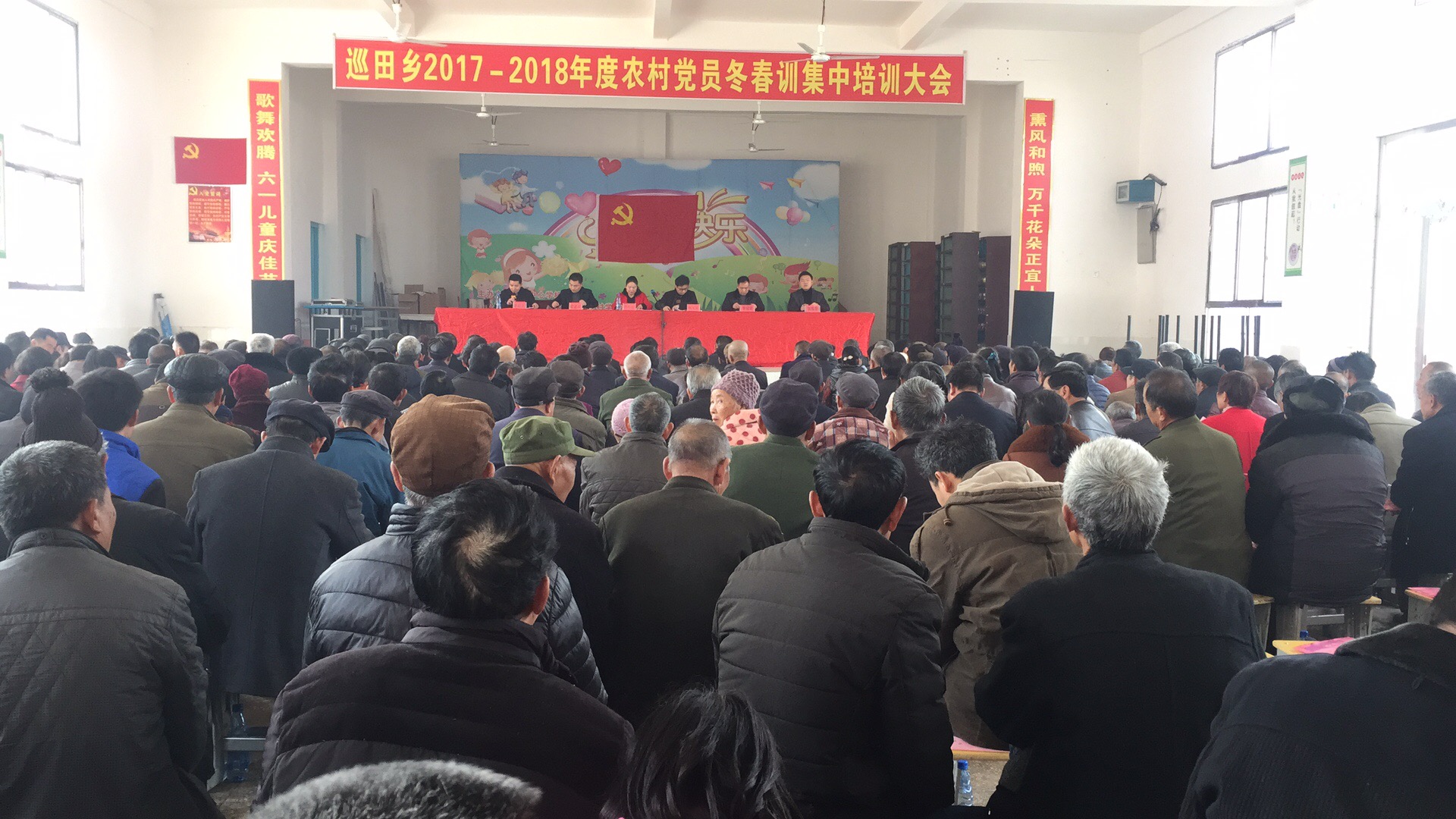 3月1日上午,巡田乡组织开展2017-2018年度农村党员冬春训大会,全乡300多名农村党员在巡田乡中心小学大礼堂参加集中培训。