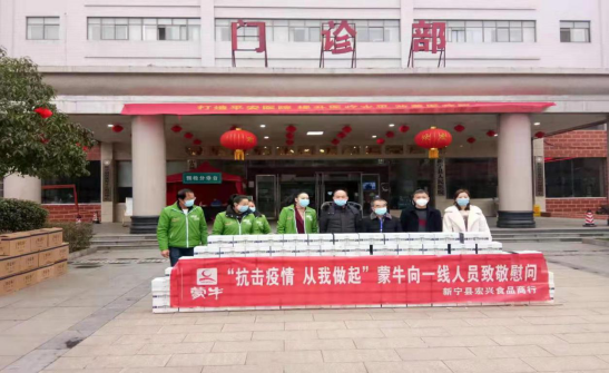 (图为新宁县宏兴食品商行向县人民医院捐赠蒙牛牛奶)