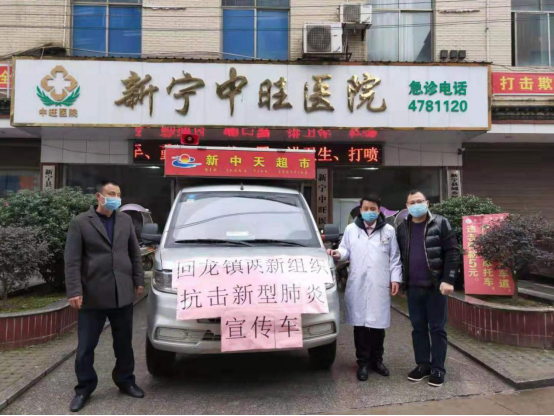 (图为回龙寺镇两新组织联合支部组织宣传车宣传新型肺炎)
