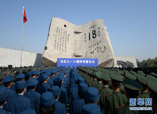 “勿忘九一八”撞钟鸣警仪式18日上午在沈阳举行。中共中央政治局常委、中央书记处书记刘云山在仪式上讲话。随着14声警世钟鸣响,9时18分,沈阳等地拉响防空警报,火车、轮船汽笛齐鸣,警示世人勿忘国耻、圆梦中华。