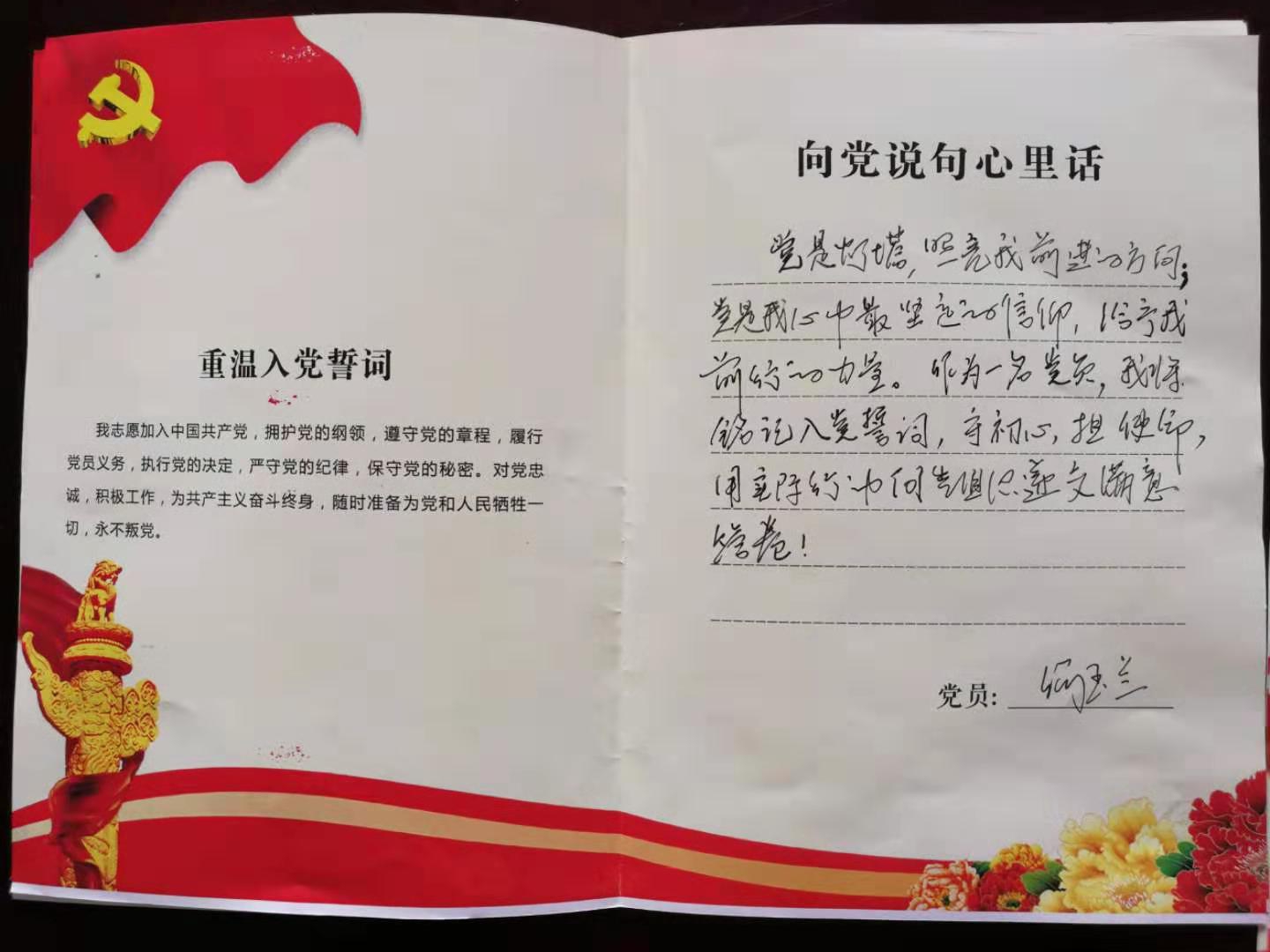 通过开展此次“向党说句心里话”活动,让党员在牢记初心使命的过程中,进一步增强党性,激扬工作斗志。