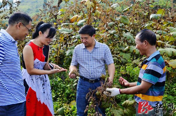图为付畅锐在回龙寺镇高阳村调研博落回(号桐杆)规模化种植工作。(李开祥 摄)