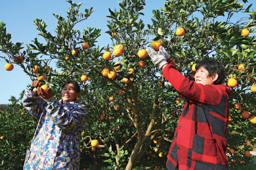 每到深秋时节,稻子熟了,橙子黄了,整个新宁宛如一座巨大的金山。依托脐橙产业,当地农民过上了小康生活。