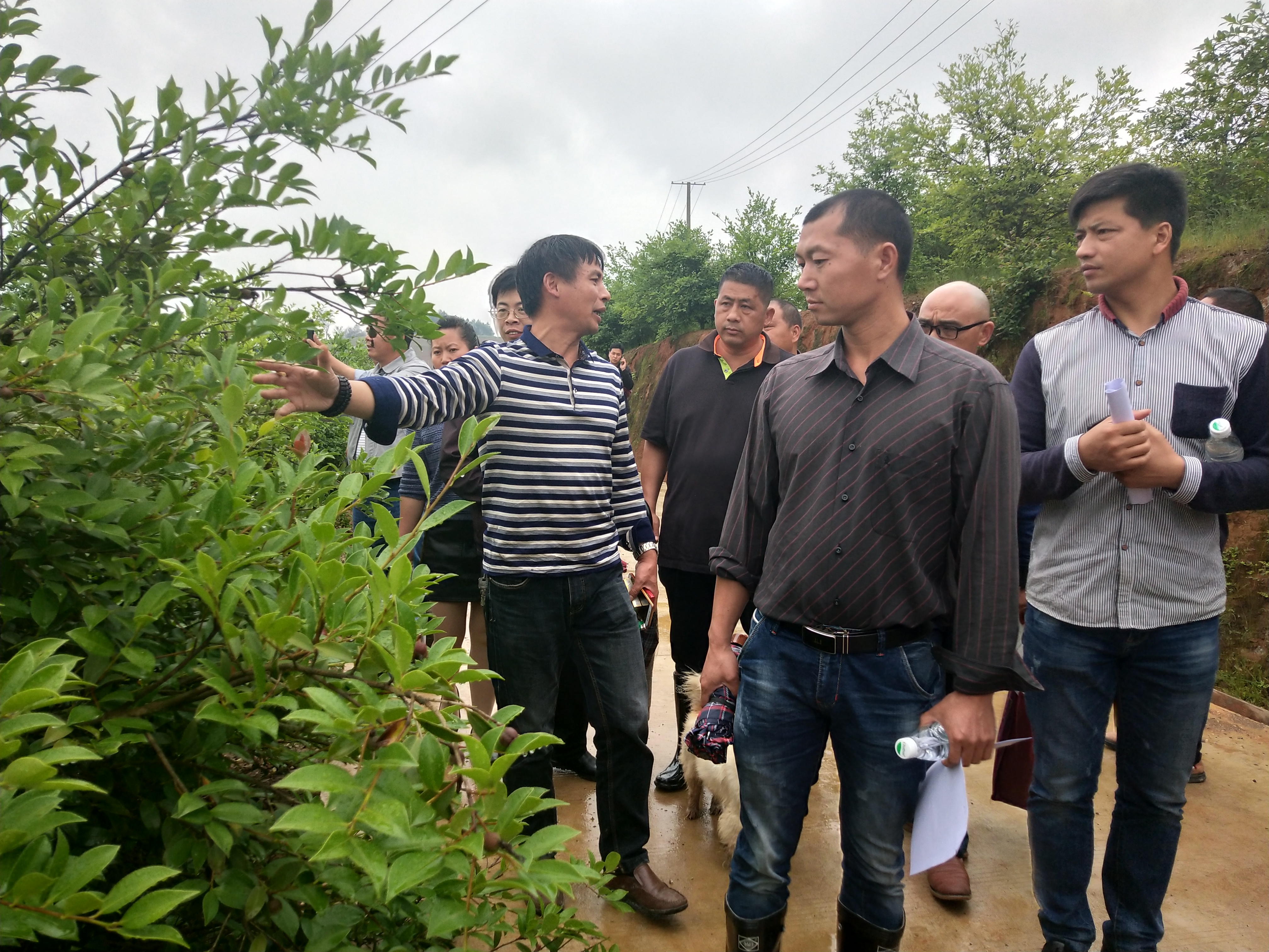 图为农民大学生在油茶基地现场听取“田专家”讲授油茶种植技术