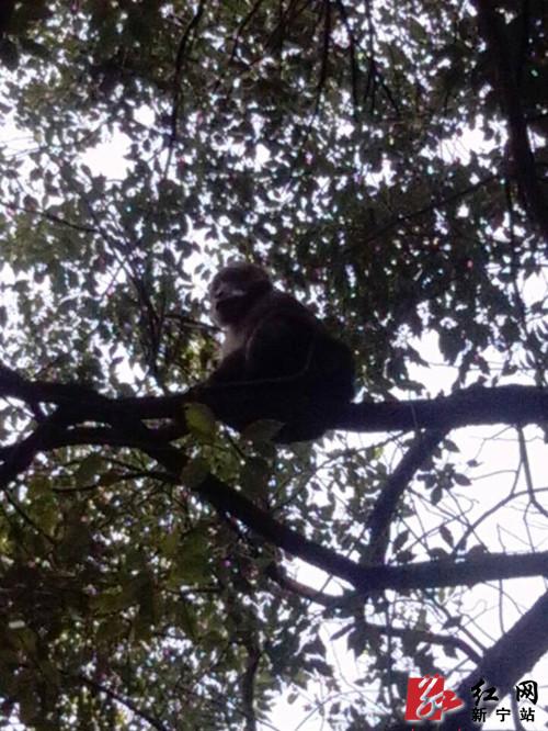 野生猴 图为游客用手机拍下来的瞬间(中国崀山网)